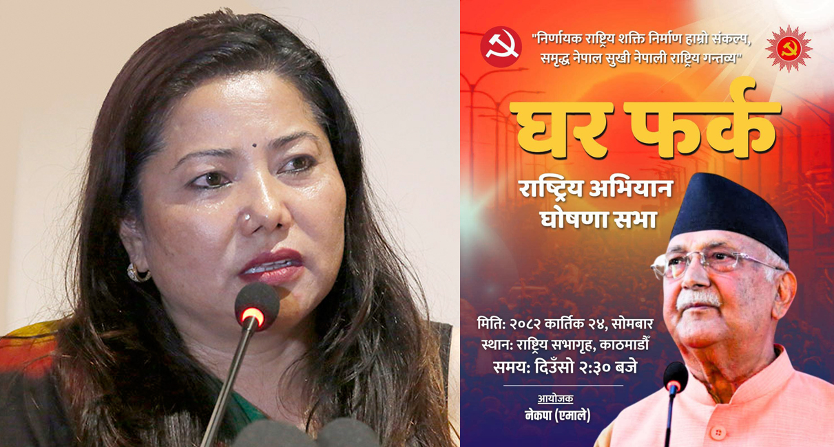 काठमाडौं । नेकपा एमालेले आज पार्टी विभाजनका बेला अलग भएका नेता–कार्यकर्तालाई पुनः पार्टीमा भित्र्याउने अभियान सुरु गर्दैछ। यसैअन्तर्गत ‘घर फर्क राष्ट्रिय अभियान घोषणा सभा’ आज दिउँसो साढे २ बजे काठमाडौंको राष्ट्रिय सभागृहमा आयोजना हुँदैछ।