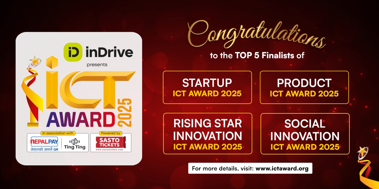 काठमाडौं । दशौ ‘आइसिटी अवार्ड २०२५’ मा ४ विधाका उत्कृष्ट ५ सार्वजनिक गरिएको छ । स्टार्टअप, प्रडक्ट, राइजिङ स्टार इन्नोभेसन र सोसल इन्नोभेसन आइसिटी अवार्ड २०२५ का उत्कृष्ट ५ घोषणा गरिएको हो । यस वर्ष ‘इन्ड्राइभ आइसिटी अवार्ड २०२५ इन एसोसिएसन विथ नेपाल पे, टिंगटिंग र पावर्ड वाई सस्तो टिकेट’ को रुपमा पुष पहिलो साता दशौ संस्करणको आइसिटी अवार्ड हुदैछ ।