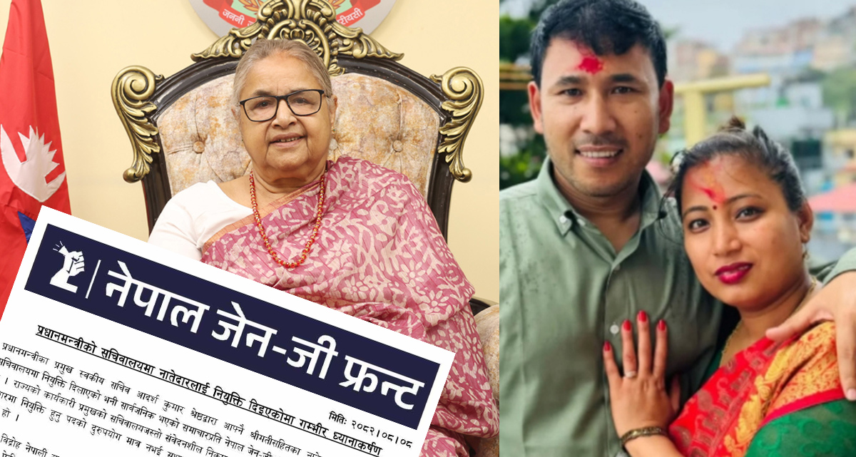 काठमाडौँ । नेपाल जेन–जी फ्रन्टले प्रधानमन्त्री सुशीला कार्कीका प्रमुख स्वकीय सचिव आदर्शकुमार श्रेष्ठलाई तत्काल बर्खास्त गर्न माग गर्दै पाँच बुँदे मागपत्र सरकारमा पेस गरेको छ ।