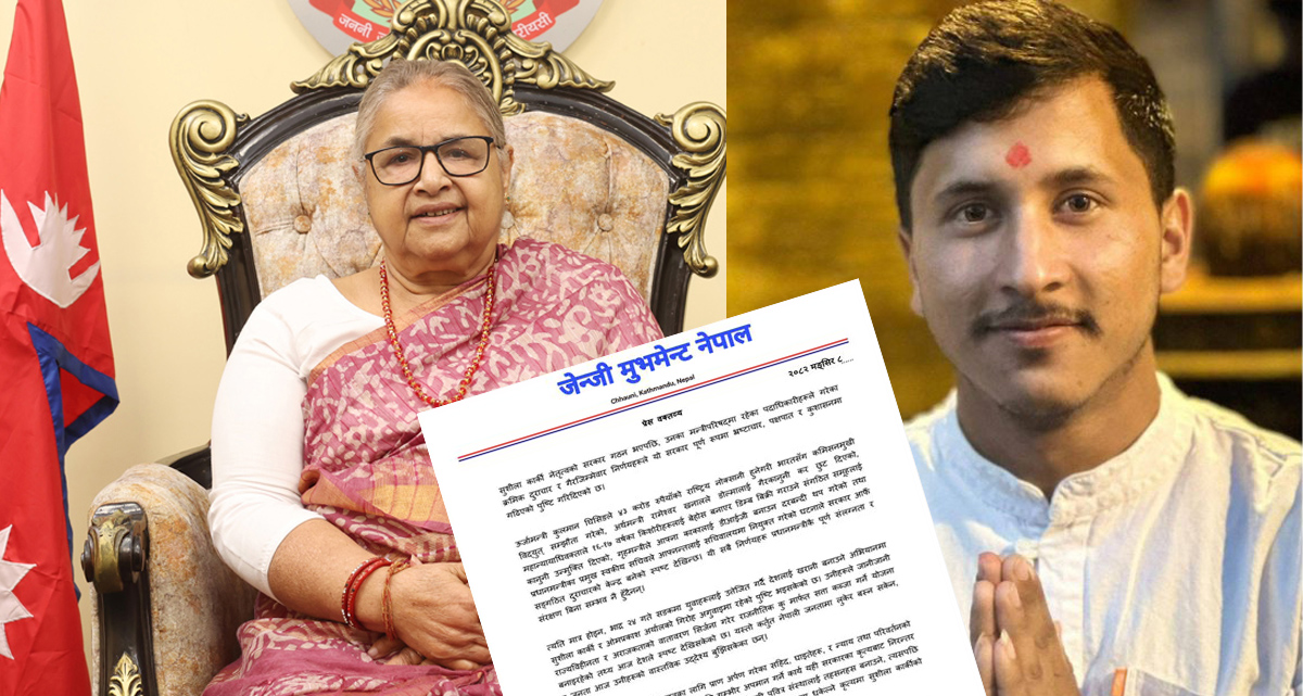 काठमाडौं । जेनजी मुभमेन्ट नेपालले प्रधानमन्त्री सुशीला कार्कीको राजीनामा माग गरेको छ । सरकारमा फैलिएको भ्रष्टाचार, सत्ता दुरुपयोग र संविधानविपरीतका गतिविधि बढ्दै गएको भन्दै उनीहरूले प्रधानमन्त्री कार्की पदमा बसिरहन नपाउने तर्क गरेका छन् ।
