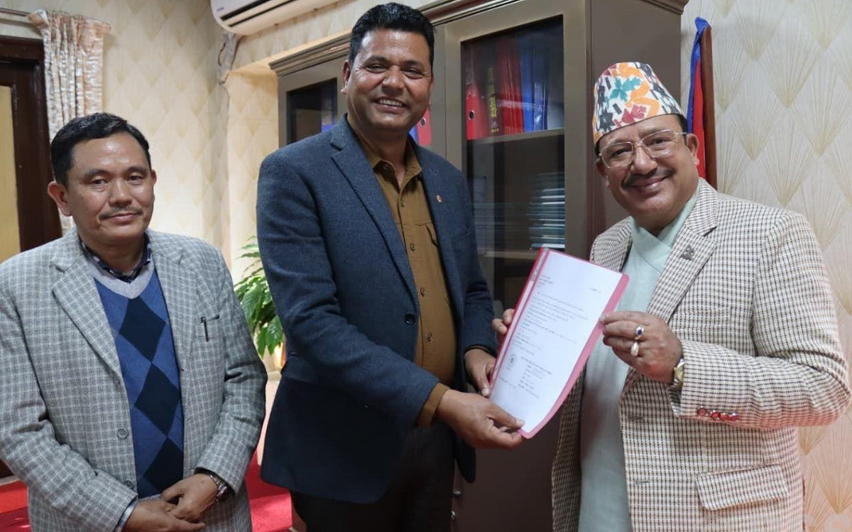 आयोगको कार्यालय कान्तिपथ पुगेर एमालेको केन्द्रीय निर्वाचन आयोगका प्रमुख निरज आचार्यले आयोगका कार्यवाहक प्रमुख आयुक्त रामप्रसाद भण्डारीलगायतलाई भेटेर दल दर्ताको निवेदन हस्तान्तरण गरेका हुन् ।