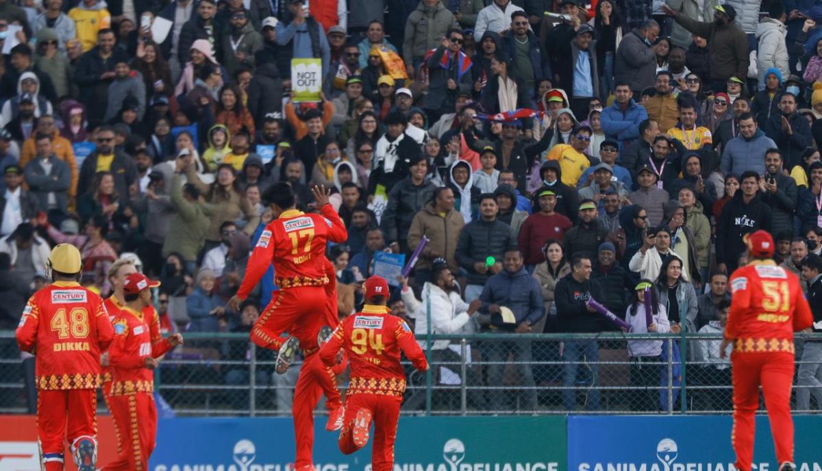 आरिफ शेखले ६ रन बनाए। कप्तान दीपेन्द्र सिंह ऐरी १३ रनमा क्याच भए। उनलाई लुम्बिनी लायन्सका कप्तान रोहित पौडेलले रुबेन ट्रम्पलमेनको हातमा क्याच गराए। १०.५ ओभरमा दीपक बोहरा र १०.६ ओभरमा पुनित मेहरालाई डक बनाउँदै रोहितले व्याक्तिगत ह्याट्रिक पूरा गरे। यो एनपीएलको समग्रमा दोस्रो ह्याट्रिक हो।
