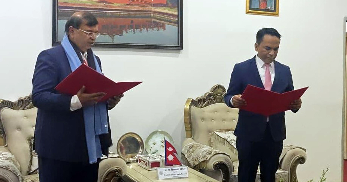 नवनियुक्त अध्यक्ष अशोक कुमार अग्रवालले नेपाल राष्ट्र बैंकका गर्भनर प्रा. डा. विश्वनाथ पौडेलबाट पद तथा गोपनियताको सपथ ग्रहण लिएका छन् ।