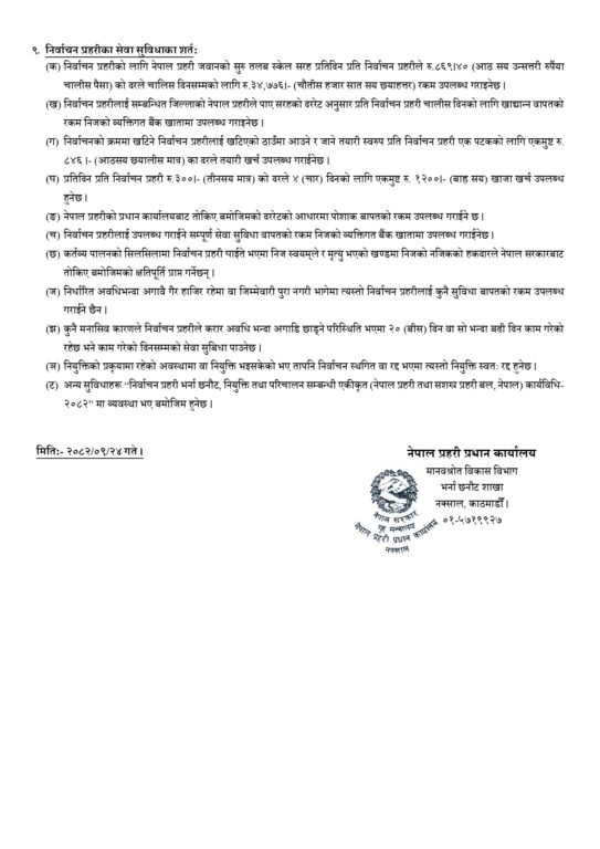 काठमाडौं । निर्वाचनको सुरक्षाका लागि नेपाल प्रहरीले निर्वाचन प्रहरी भर्ना खुला गरेको छ। मानवस्रोत विकास विभाग (भर्ना छनोट शाखा) ले प्रतिनिधि सभा सदस्य निर्वाचनलाई लक्षित गर्दै लाख ३३ हजार २८० जना निर्वाचन प्रहरी माग गरेको हो।