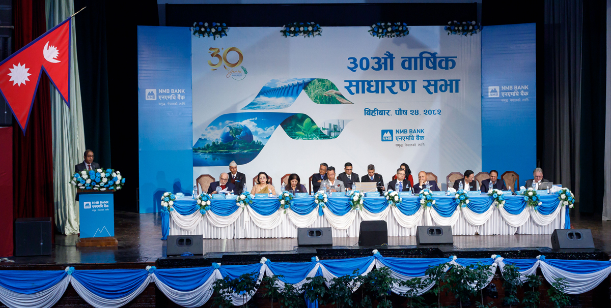 एनएमबि बैंकको सञ्चालक समितिका अध्यक्ष मनोज कुमार गोयलको सभापतित्वमा उक्त साधारण सभा सम्पन्न भएको हो । सो अवसरमा सहभागी शेयरधनीहरूले आ–आफ्नो मन्तव्य व्यक्त गर्दै बैंकका विविध पक्षमाथि छलफल गरेका छन् ।