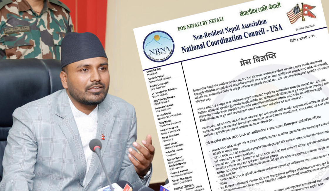 विज्ञप्तिमा भनिएको छ, एनआरएन अमेरिका को आधिकारिक जानकारी, स्वीकृति तथा निर्णय बिना कुनै पनि व्यक्ति वा समूहले संस्थाको नाम, ईआईएन नम्बर, वेबसाइट वा डिजिटल प्लेटफर्म प्रयोग गरी कार्यक्रम, आर्थिक संकलन वा अन्य गतिविधि सञ्चालन गर्नु गैरकानुनी हो र त्यसको पूर्ण जिम्मेवारी सम्बन्धित व्यक्ति वा समूह स्वयं हुनेछन्।