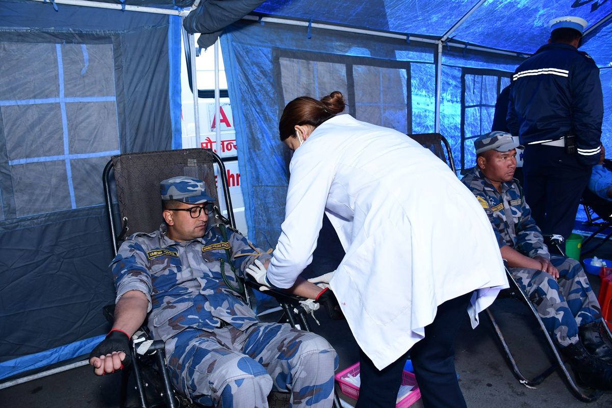 आज (शुक्रबार) बिहान ९ बजेदेखि अपरान्ह ४ बजेसम्म सञ्चालन भएको रक्तदान कार्यक्रममा एक सय ३९ जनाले रक्तदान गरेका थिए । कार्यक्रममा काठमाडौं उपत्यका ट्राफिक प्रहरी कार्यालयका प्रमुख प्रहरी वरिष्ठ उपरिक्षक नवराज अधिकारीले पहिलो रक्तदान गरी कार्यक्रमको सुरुवात गर्नु भएको थियो । जसमा काठमाडौँ उपत्यकामा कार्यरत प्रहरी कर्मचारी, शसस्त्र प्रहरी, महानगर प्रहरी लगायत केही सर्वसाधरणहरुले समेत रक्तदान गरेका थिए ।