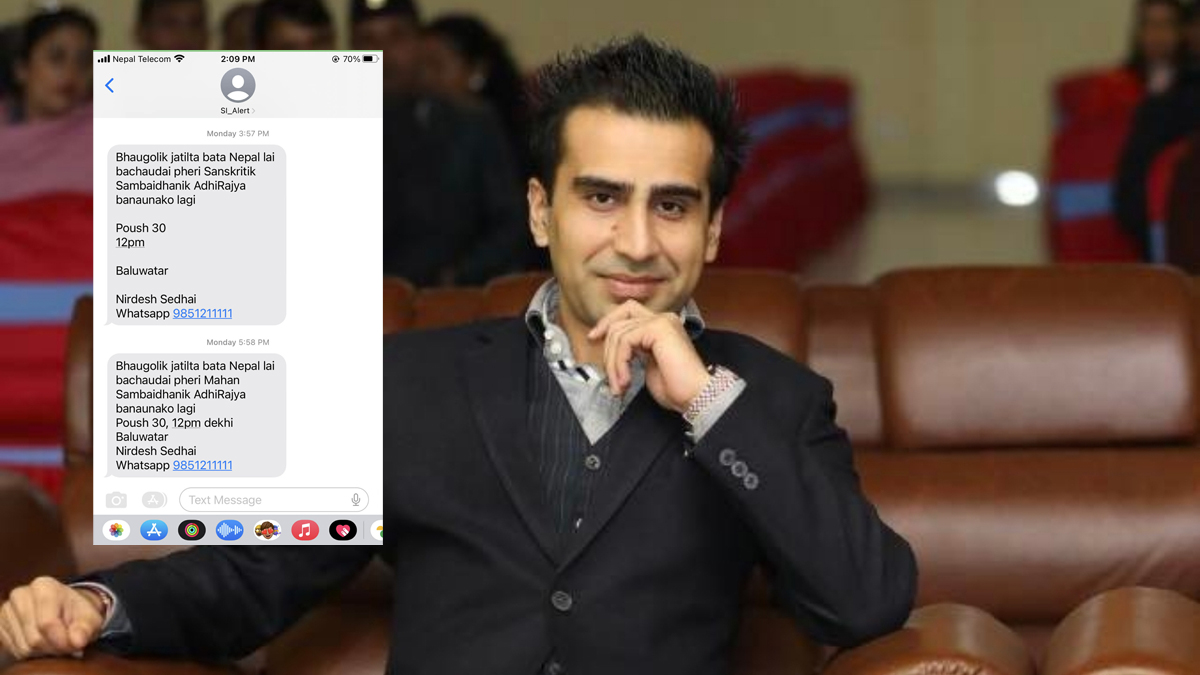 काठमाडौं । राजावादी प्रदर्शनमा सहभागी हुन आह्वान गर्दै सामूहिक रूपमा एसएमएस पठाउने निर्देश सेढाईं पक्राउ परेका छन्।