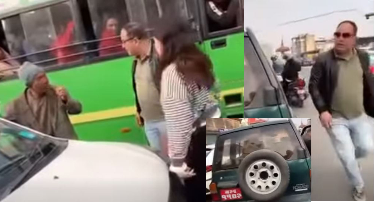 बीच सडकमा कार रोकेर पैदलयात्री वृद्धलाई मुक्का प्रहार गरिएको दृश्य देखिने भिडिओ सार्वजनिक भएको छ । भिडियो नारायणगोपाल चोक चक्रपथ जस्तो देखिन्छ भने उक्त घटना किन, कहिले हो भन्ने खुलेको छैन।