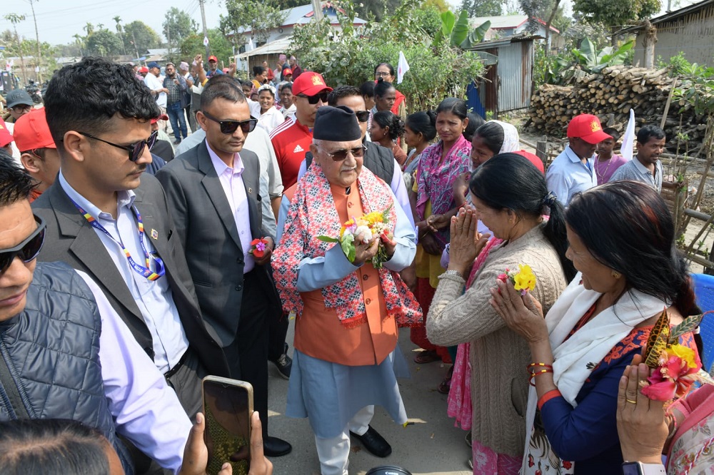 झापा । नेकपा (एमाले)का अध्यक्ष केपी शर्मा ओली यतिबेला झापा ५ को घरदैलो अभियानमा व्यस्त छन्। यही फागुन २१ गते हुने प्रतिनिधिसभा सदस्य निर्वाचनमा झापा ५ बाट उम्मेदवार रहेका ओली घरदैलो अभियानका क्रममा मतदाताहरुसँग भेटघाट, छलफल गरिरहेका छन् ।
