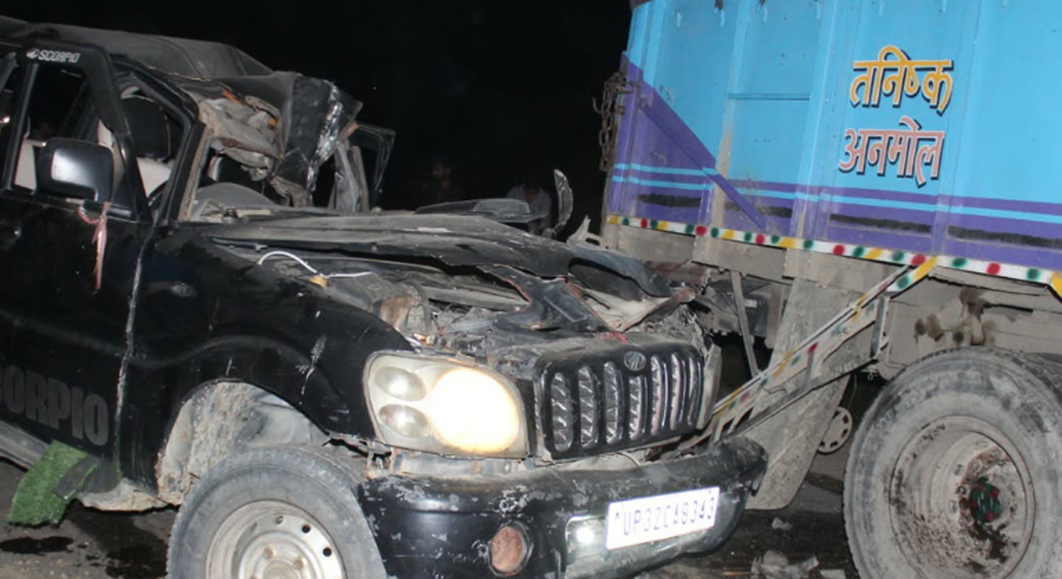 बहादुरगन्जबाट तौलिहवातर्फ जाँदै गरेको यूपी.३२ सीए ८३४३ नम्बरको भारतीय स्कार्पिओ सडक किनारमा रोकिएको लु.१ ख ९५४९ नम्बरको ट्रकमा ठोक्किँदा दुर्घटना भएको प्रहरीले जनाएको छ।