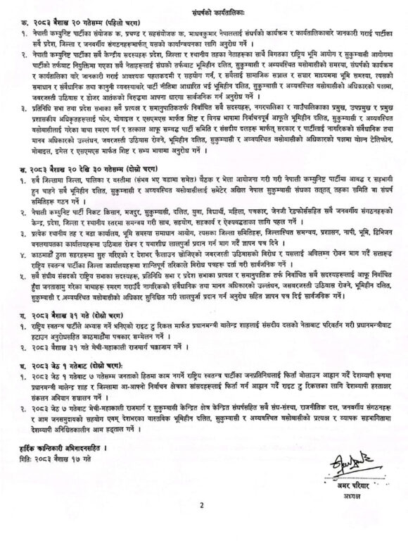 दोस्रो चरणको आन्दोलन वैशाख २० गतेदेखि सुरु हुनेछ। यसअन्तर्गत देशभरका जिल्ला, पालिका र बस्तीस्तरमा विरोध सभा तथा भेला आयोजना गरिनेछ। साथै, राष्ट्रिय स्वतन्त्र पार्टीका जिल्ला कार्यालयअगाडि शान्तिपूर्ण प्रदर्शन गर्ने कार्यक्रम पनि तय गरिएको छ।