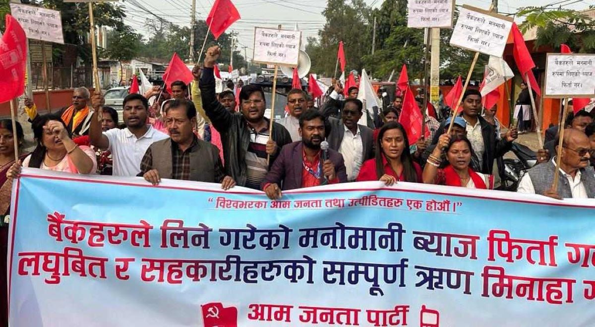 लघुवित्त र सहकारीको ऋण मिनाहाको माग राख्दै आमजनता पार्टीको प्रदर्शन