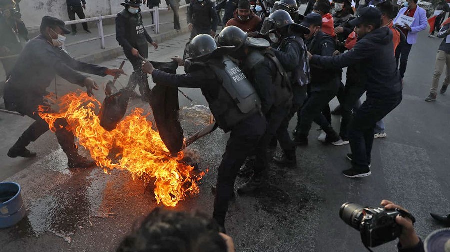 पेट्रोलियम मूल्यवृद्धिको विरोधमा देउवाको पुत्ला दहनसहित अनेरास्ववियुको प्रदर्शन (भिडियोसहित)