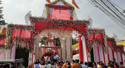सुरक्षाकर्मी परिचालन गरी दुर्गा माताको मूर्ति विसर्जन
