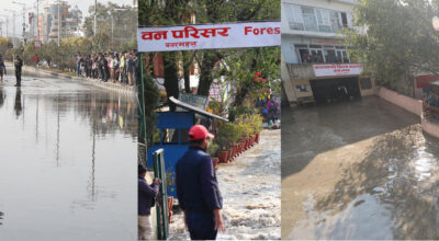 काठमाडौं । मेलम्ची खानेपानी आयोजनाको पाइप फुटेर जलमग्न भएपछि काठमाडौंस्थित बबरमहलको सडक भाँसिएको छ । सडक भाँसिएपछि हाल आवतजावत रोकिएको छ । पाइप फुटेपछि अनियन्त्रित रुपमा बगेको पानीले बबरमहलस्थित त्यहाँका सरकारी कार्यालयहरु डुबानमा परेका छन् भने विशेष अदालतमा सुनुवाइ रोकिएको