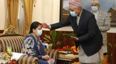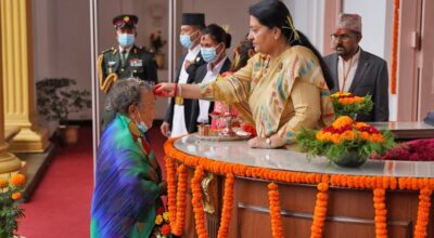 काठमाडौँ । आज आश्विन शुक्ल द्वादशीका दिन पनि नवदुर्गाको प्रसादस्वरुप टीका थाप्न र आशीर्वाद लिन मान्यजनका घरमा जानेको चहलपहल बढेको छ । नौ दिनसम्म पूजा आराधना गरी देवी विसर्जन गरेपछि विजयादशमीका दिनदेखि सुरु भएको प्रसाद लगाउने र मान्यजनबाट आशीर्वाद लिनेक्रम