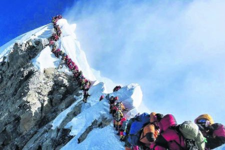 पोखराको सराङ्कोटमा शुक्रबार माछापुच्छ्रे हिमालको रमणीय दृश्यहरू अवलोकन गर्दै विदेशी पर्यटक । तस्वीर : राधिका कंडेल/रासस