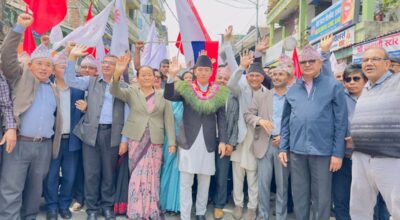 काठमाडौं । नेकपा एमालेबाट इलाम-२ मा उम्मेदवार बनेका सुहाङ नेम्वाङले मनोनयन दर्ता गरेका छन् । सुहाङले नेता कार्यकर्ताको जुलुससहित निर्वाचन कार्यालय पुगेर आफ्नो मनोनयन दर्ता गरेका हुन् । सुहाङलाई माओवादी केन्द्रले समेत समर्थन गरेको छ । आगामी बैशाख १५ गते