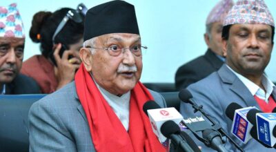 काठमाडौं । नेकपा एमालेका अध्यक्ष केपी शर्मा ओलीले समाजवादी मोर्चामा सहभागी नहुने बताएका छन् । शुक्रबार सिंहदरबारमा प्रधानमन्त्री एवं माओवादी केन्द्रका अध्यक्ष पुष्पकमल दाहाल प्रचण्डसंगको भेटपछि ओलीले समाजवादी मोर्चामा सहभागी नहुने बताएका हुन् । उनले अहिलेको समसामयिक विषयमा प्रधानमन्त्रीसंग राम्रै