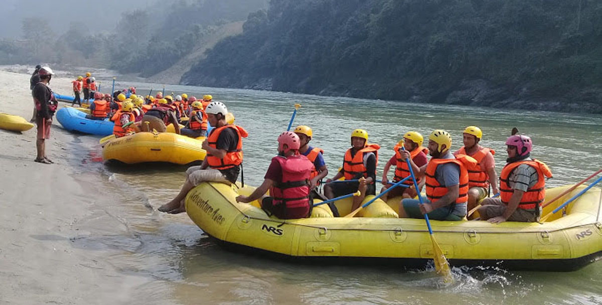 धादिङस्थित त्रिशुली नदीमा जलयात्रा गर्दै पर्यटक । यहाँ पछिल्लो समयमा जलयात्रामा पर्यटक आकर्षित भएका छन । तस्बिर : रासस