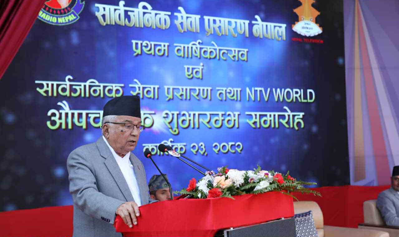 काठमाडौं । राष्ट्रपति रामचन्द्र पौडेलले सुशासन, विकास र लोकतन्त्र सुदृढीकरणमा सञ्चारमाध्यमको भूमिका निर्णायक हुने बताएका छन् । सार्वजनिक सेवा प्रसारण नेपालको पहिलो वार्षिकोत्सव तथा सार्वजनिक सेवा प्रसारण र एन टिभी वर्ल्डको औपचारिक उद्घाटन समारोहलाई आइतबार सम्बोधन गर्दै उनले लोकतन्त्रको सुदृढीकरण