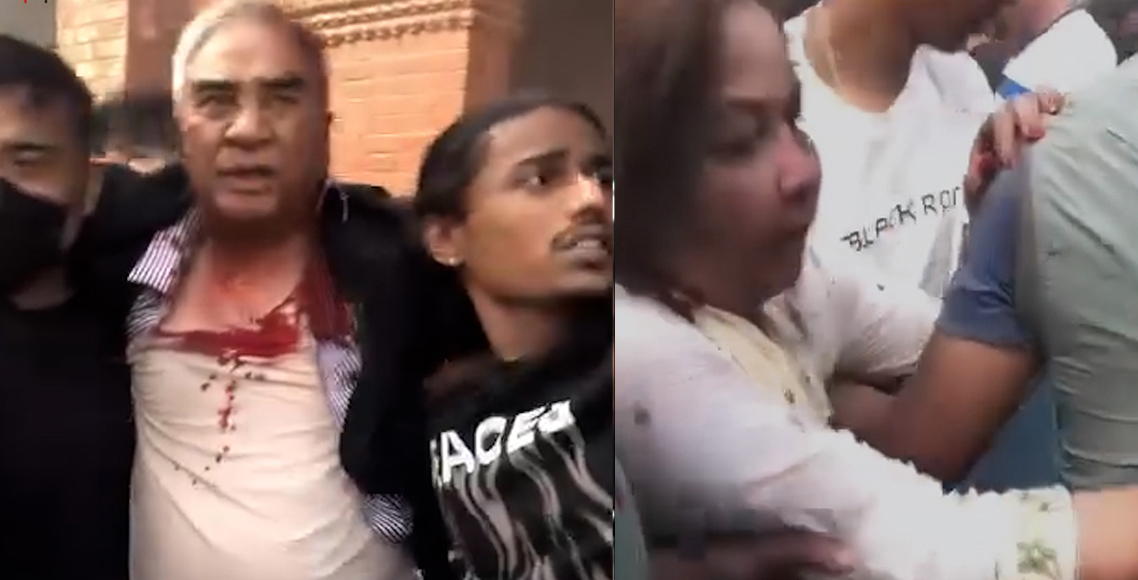 काठमाडौँ । कांग्रेस सभापति शेरबहादुर देउवा र उनकी श्रीमती आरजु देउवा राणामाथि बूढानीकण्ठस्थित निवासमा प्रदर्शनकारीहरूले आक्रमण गरेका छन् । उनीहरूमाथि आक्रमण भएको भिडिओ सामाजिक सञ्जालमा फैलिएको छ । भिडिओमा देखिएअनुसार देउवा रक्ताम्य भएका छन् भने आरजुमाथि लछारपछार भएको देखिन्छ ।